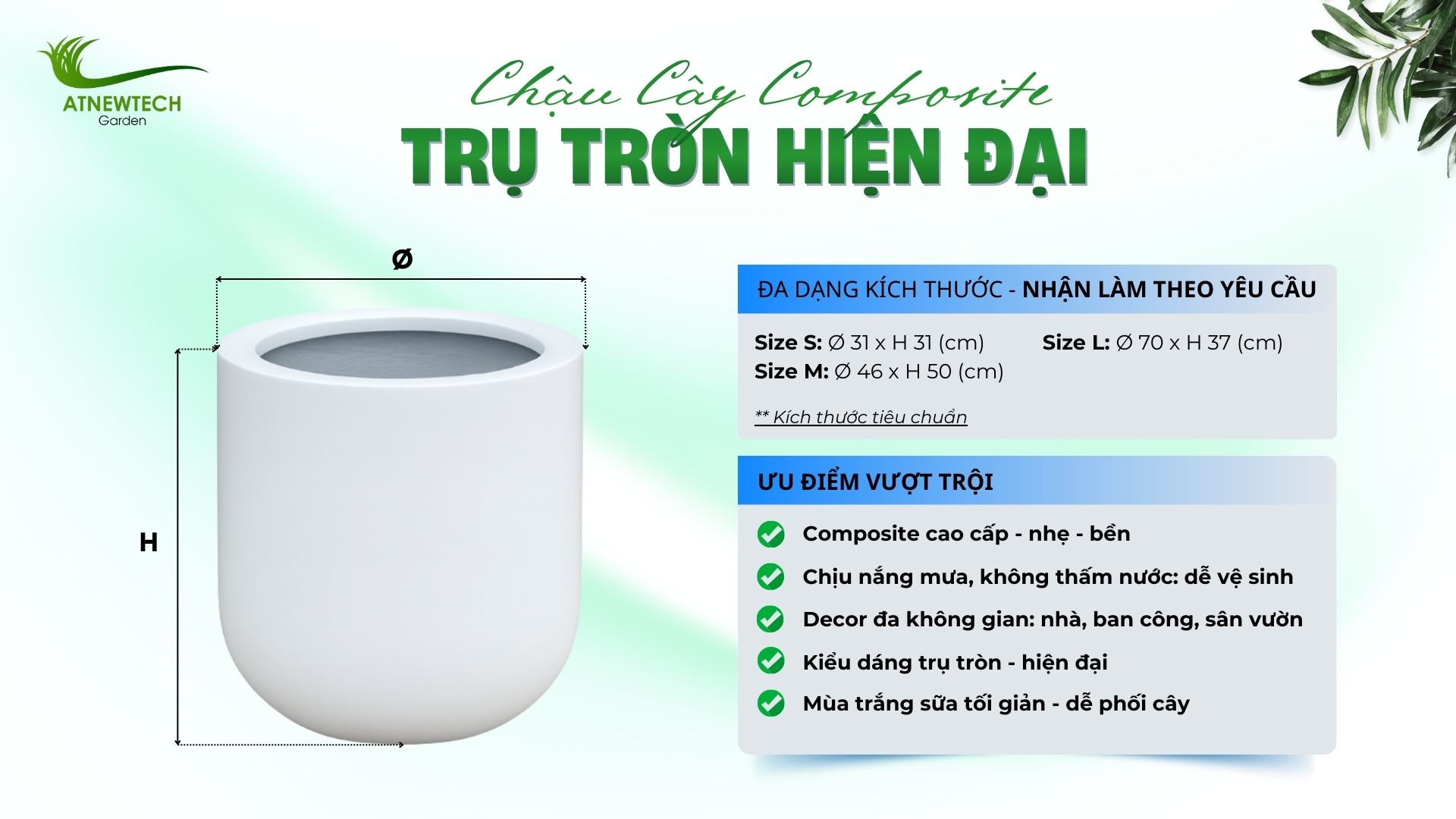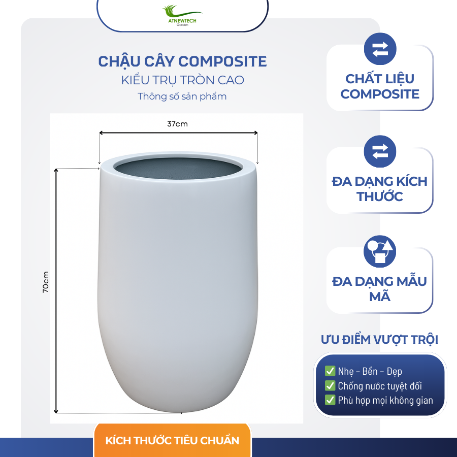 Chậu Cây Composite Atnewtech Dáng Tròn – Thiết Kế Thanh Lịch, Bo Tròn Tinh Tế, Nhẹ & Bền