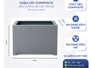 Chậu Composite Atnewtech Dáng Vuông & Chữ Nhật – Bề Mặt Vân Đá Hiện Đại – Trang Trí Nội Ngoại Thất