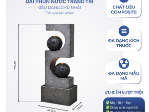 Đài Phun Nước Trang Trí Dáng Chữ Nhật Composite – Tiểu Cảnh Nội & Ngoại Thất
