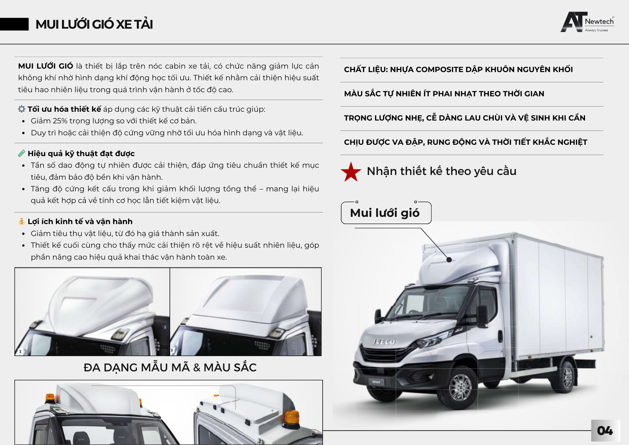AT Newtech cung cấp đa dạng các dòng mui lướt gió composite FRP phù hợp với nhiều loại xe tải: