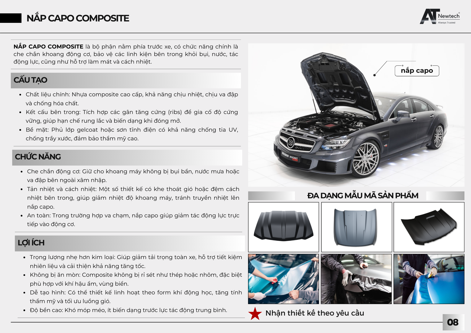 Nắp capo composite FRP – giảm trọng lượng, tăng độ bền.