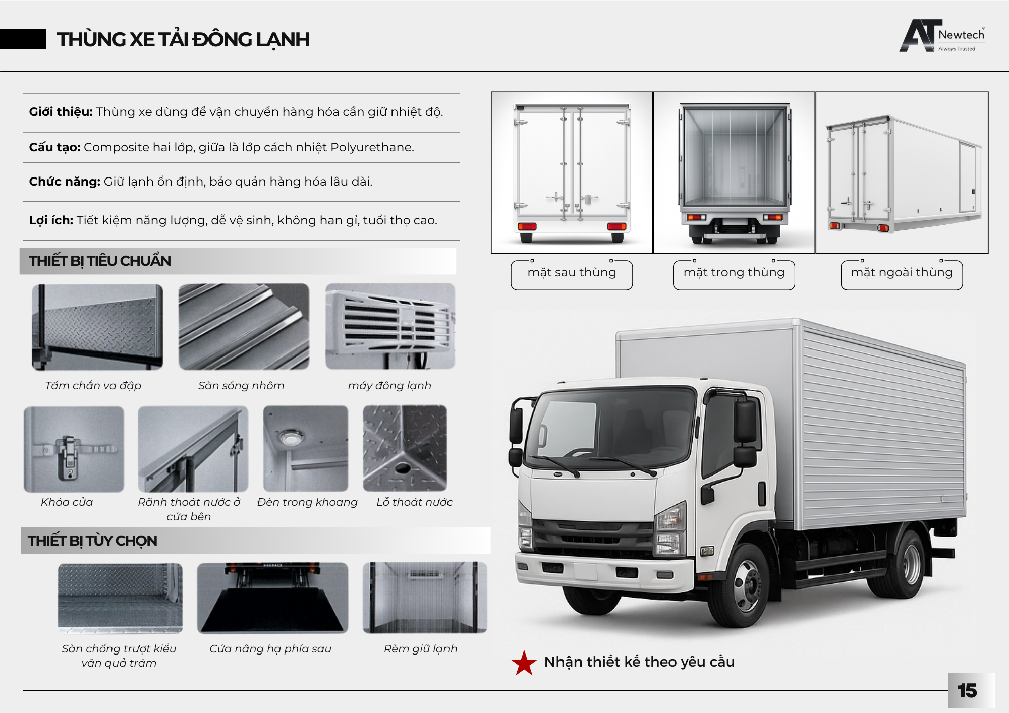 Tùy chỉnh kích thước, thiết kế theo yêu cầu (thùng kín, thùng mui bạt, thùng bảo ôn…).